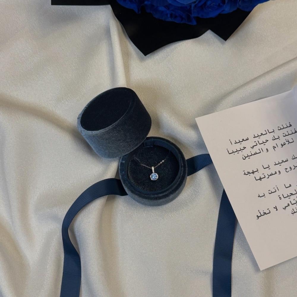 - السلسال يأتي مغلفاً بتغليف الهدايا يشمل علبة البراند، كيس البراند، علبة مخمل فاخرة للسلسال، مع كرت بالعبارة المطلوبة
